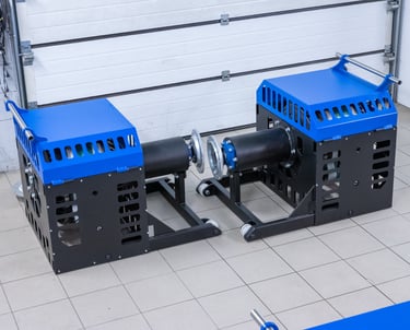350km/h maximum speed, 4000hp maximum horsepower in AWD mode, 2000hp on single axle. Dyno requires 3 phase 220v to split the load.